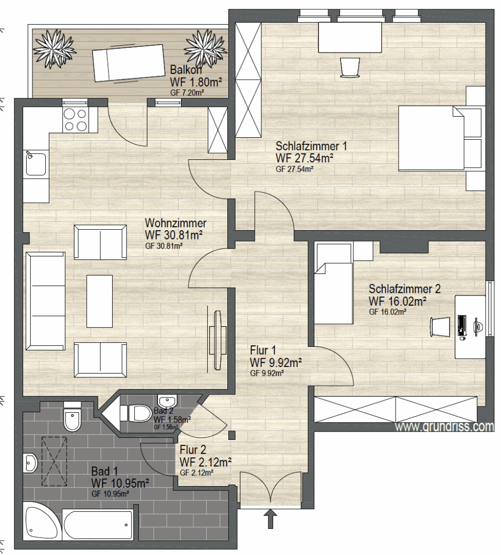 Ein weiteres Highlight ist der große Wohn- und Küchenbereich mit direktem Zugang zum Balkon, der sich ideal für gemütliche Abende, kulinarische Zusammenkünfte oder sonnige Stunden im Freien eignet.