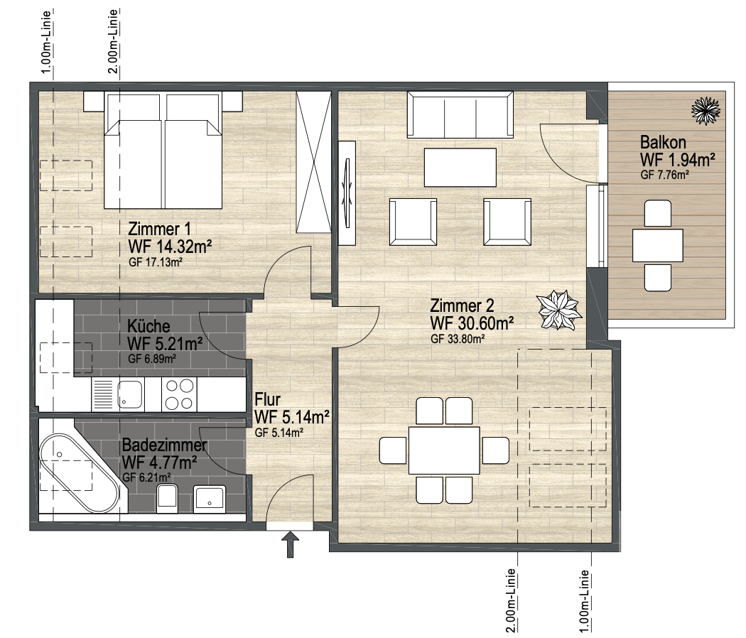 Diese 2-Zimmer-Eigentumswohnung bietet auf rund 63 m² Wohnfläche ein helles, modernes Zuhause mit durchdachtem Grundriss. Sie befindet sich in einem äußerst gepflegten Wohngebäude aus dem Jahr 1997, bei dem die Eigentümergemeinschaft großen Wert auf den laufenden Erhalt und regelmäßige Modernisierungen legt.